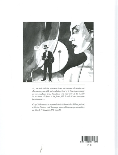 M, un vieil écrivain, rencontre dans une taverne allemande une charmante jeune fille qui souhaite à tout prix être le personnage de son prochain livre. Installant son récit lors de la montée du nazisme, il donne à la jeune fille le rôle d'une chanteuse héroïnomane ... Ce qui évidemment ne va pas plaire à la demoiselle. Mêlant présent et fiction, l'auteur rend hommage aux ambiances expressionnistes du film de Frite Lang, M le maudit.