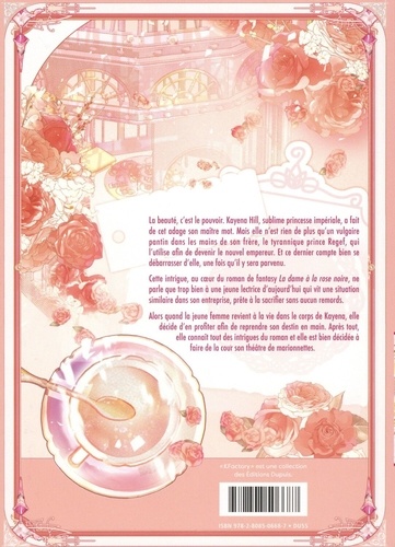 La beauté, c'est le pouvoir. Kayena Hill, sublime princesse impériale, a fait de cet adage son maître mot. Mais elle n'est rien de plus qu'un vulgaire pantin dans les mains de son frère, le tyrannique prince Regef, qui l'utilise afin de devenir le nouvel empereur. Et ce dernier compte bien se débarrasser d'elle, une fois qu'il y sera parvenu. Cette intrigue, au coeur du roman de fantasy La dame à La rose noire, ne parle que trop bien à une jeune lectrice d'aujourd'hui qui vit une situation similaire dans son entreprise, prête à la sacrifier sans aucun remords. Alors quand la jeune femme revient à la vie dans le corps de Kayena, elle décide d'en profiter afin de reprendre son destin en main. Après tout, elle connaît tout des intrigues du roman et elle est bien déridée à foire de la cour son théâtre de marionnettes.