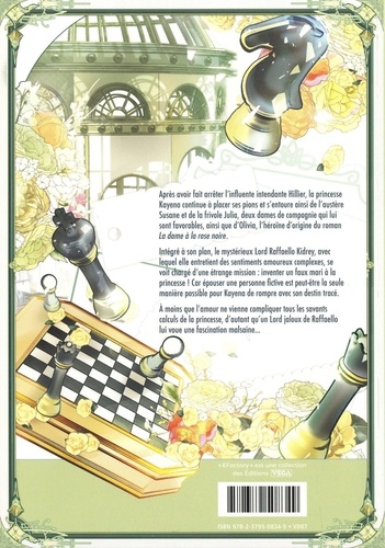 Après avoir fait arrêter l'influente intendante Hilier, la Princesse Kayena continue à placer ses pions, s'entourant de l'austère Susan et de la frivole Julia, deux dames de compagnie qui lui sont favorables, ainsi que d'Olivia, l'héroïne d'origine du roman La Dame à la rose noire. Intégré à son plan, le mystérieux Lord Raphaël Kedrey, avec lequel elle entretient des sentiments amoureux complexes, se voit chargé d'une étrange mission : inventer un faux mari à la princesse ! Car être l'épouse d'une personne fictive est peut-être la seule manière possible pour Kayena de rompre avec son destin tracé. A moins que l'amour ne vienne compliquer tous les savants calculs de la princesse, d'autant qu'un lord jaloux de Raphaël lui voue une fascination malsaine...