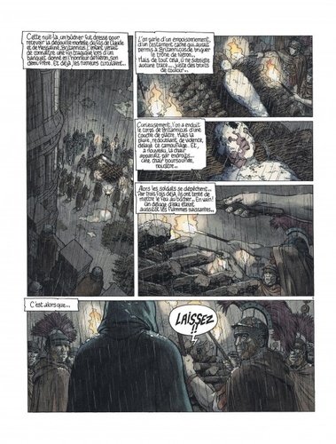 Britannicus est mort comme son père, l'empereur Claude. Empoisonné. Le testament qui aurait pu mettre fin aux ambitions de Néron n'est plus que cendres. Néron reste seul sur le trône de Rome. Seul ? Enfin presque. Dans l'ombre, sa mère, Agrippine, seconde épouse de l'empereur, a bien l'intention de faire ce qu'il faut pour " mordre à ce fruit pourri qu'est le pouvoir. " Le corps de Britannicus enduit de plâtre finit à peine de brûler sur un bûcher battu par la pluie que la lutte pour le pouvoir reprend de plus belle. Néron apprend de Locuste l'empoisonneuse comment Agrippine a fait assassiner Claude. Il la prend à son service. Agrippine riposte en faisant empoisonner l'empoisonneuse. Néron se sent si seul qu'il appelle auprès de lui sa tante, Domitia Lepida, bête noire de l'impératrice. Agrippine riposte en obligeant son fils à signer lui-même la condamnation à mort de Domitia. Agrippine, la meilleure des mères. Dufaux débarrasse la légende romaine de ses derniers oripeaux romantiques. A travers le dessin réaliste et très fouillé de Delaby, il montre sans fard ce qu'a souvent été l'Histoire à travers les siècles : une succession de sinistres règlements de comptes entre membres d'une même famille peu disposés à partager le gâteau. Et utilisant sans une once de scrupule cruautés, crimes et trahisons. Rome antique, France du Moyen-Age, Italie mafieuse, même combat.