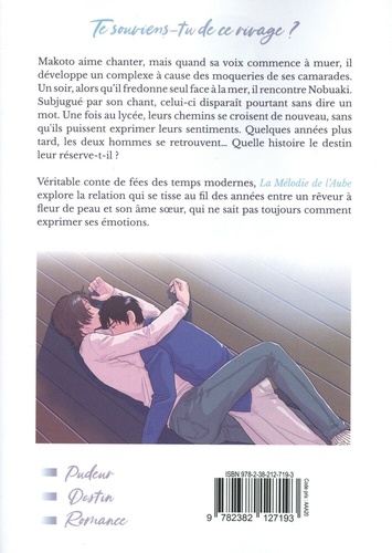Makoto aime chanter, mais quand sa voix commence à muer, il développe un complexe à cause des moqueries de ses camarades. Un soir, alors qu'il fredonne seul face à la mer, il rencontre Nobuaki. Subjugué par son chant, celui-ci disparaît pourtant sans dire un mot. Une fois au lycée, leurs chemins se croisent de nouveau, sans qu'ils puissent exprimer leurs sentiments. Quelques années plus tard, les deux hommes se retrouvent... Quelle histoire le destin leur réserve-t-il ? Véritable conte de fées des temps modernes, La Mélodie de l'Aube explore la relation qui se tisse au fil des années entre un rêveur à fleur de peau et son âme soeur, qui ne sait pas toujours comment exprimer ses émotions.
