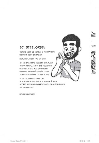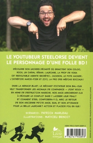 Découvre son univers déjanté où gravitent son coloc, Rock, un cheval végan ; Lauriane, la prof de yoga (et redoutable agente secrète) ; Jackson, le pote hacker ; l'intrépide Marie-Pier et Ziyi, la pro des médias sociaux ! Dans La menace Blast, le méchant dictateur Gom Bal-Oun veut transformer les animaux de compagnie - dont Rock - en arme de destruction massive. Nos amis arriveront-ils à déjouer le complot sans y laisser leur peau ? Et comment Steel composera-t-il avec le retour de son ancienne petite amie, Sam, et son attirance pour la belle Lauriane ? Action et plaisir fou en vue !