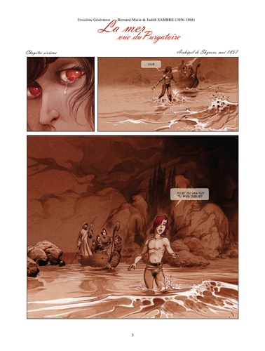 La suite tant attendue de la BD culte de Yslaire ! Skyvore island, mai 1857. Au coeur de la tempête, La Désirée fend les flots au large de l'Irlande. A son bord, des bagnardes enchaînées qui en échange d'une remise de peine ont accepté de s'exiler à Cayenne. Parmi elles, le matricule 3492, alias Julie Saintange, s'abandonne à la mélancolie. Les souvenirs de Bernard Sambre se disputent à ceux de Bernard-Marie, leur enfant commun. Le premier est mort, le second lui a été volé... Quand soudain, éventré par un récif, le bateau sombre dans une mer démontée. Malgré ses chaînes, Julie survit à la noyade. Elle échoue au pied d'un phare perdu en pleine mer. Adam Scott Shagreen, le gardien des lieux, lui offre l'hospitalité dans ce qu'il appelle son purgatoire et l'accueille avec ces mots : "Vous êtes une miraculée... " Mais, comme en écho, dans la pénombre, Julie entend la voix du fantôme de Bernard qui lui demande... "Pourquoi as-tu survécu, Julie ? Tu ne m'aimes plus ? " Sambre est une série à part dans l'univers de la bande dessinée. Dès sa sortie, le premier album a franchi la barre des 100 000 exemplaires, raflé nombre de prix internationaux et suscité les louanges des professionnels. Le second album, publié quatre ans plus tard, confirma le succès initial. Pour la première fois depuis les Blake et Mortimer de Jacobs, une série voit son succès croître sans devoir passer par le biais d'une parution régulière. Telle est la marque Sambre qui s'inscrit, album après album, comme l'oeuvre d'exception d'un artiste majeur. Le sixième album sera donc l'événement BD du premier semestre 2011.