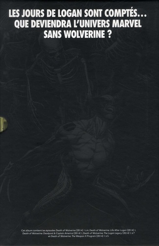 L'un des plus grands succès de Panini Comics de ces dernières années revient dans une édition grand format, enrichie de nombreux épisodes. Privé de son facteur autoguérisseur, Logan est devenu une cible. Conscient que le temps lui est désormais compté, Wolverine réussira-t-il à donner un sens à sa mort ? Dans cette édition exceptionnelle très grand format, retrouvez également l'intégralité des mini-séries et one-shot publiés en lien avec la mort du héros : The Weapon X Program, The Logan Legacy, Deadpool & Captain America et Life after Logan.