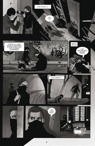Dans un futur dystopique proche, au coeur d'une société Londonienne profondément xénophobe, Donnie vit mal sa condition de jeune émigré. Influencé par son frère aîné Zeno, ils décident de poser une bombe au Bureau du Contrôle des Frontières. Pris de remords, Donnie retourne sur les lieux juste avant l'explosion de l'engin, mais il est pris dans la déflagration, et se réveille dans une étrange contrée, baptisée Asante... Première oeuvre majeure de Fred Fordham, peintre et auteur de bande dessinée anglais, Nightfall plonge ses racines dans les croyances humaines, tout en explorant les origines et les limites de l'imagination. C'est aussi un récit d'aventures et une histoire d'amour teintée de trahison entre deux protagonistes qui ne se sont pas encore rencontrés... Flirtant entre les ambiances de V pour vendetta et d'Alice au Pays des Merveilles, Fred Fordham nous propose sa vision fulgurante de beauté et de noirceur, inspirée du Paradis perdu de Milton.