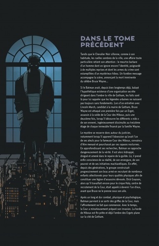 La Cour des Hiboux prend son envol, et la nuit à venir pourrait bien signer la destruction de Gotham City elle-même. Lancés depuis les hauteurs de la ville, les Ergots, émissaires assassins de la Cour, ont pour mission de mettre à mort les personnalités les plus progressistes de la cité, laissant à leurs maîtres le champ libre pour étendre leur emprise. Les prochains noms sur leur liste : Lincoln March et Bruce Wayne...