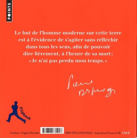 Le but de l'homme moderne sur cette terre est à l'évidence de s'agiter sans réfléchir dans tous les sens, afin de pouvoir dire fièrement, à l'heure de sa mort : "Je n'ai pas perdu mon temps". Pierre Desproges