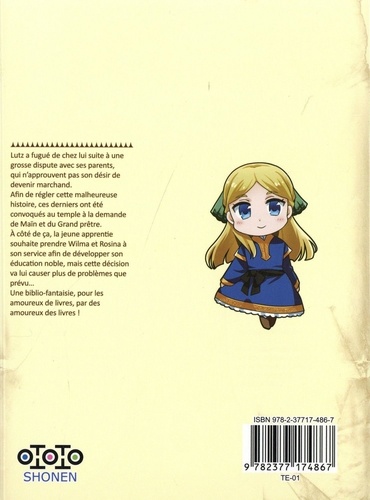 Lutz a fugué de chez lui suite à une grosse dispute avec ses parents, qui n'approuvent pas son désir de devenir marchand. Afin de régler cette malheureuse histoire, ces derniers ont été convoqués au temple à la demande de Main et du Grand prêtre. A côté de ça, la jeune apprentie souhaite prendre Wilma et Rosina à son service afin de développer son éducation noble, mais cette décision va lui causer plus de problèmes que prévu... Une biblio-fantaisie, pour les amoureux de livres, par des amoureux des livres !