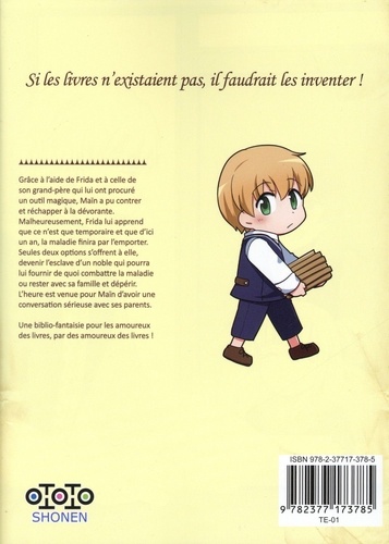 Si les livres n'existaient pas, il faudrait les inventer ! Grâce à l'aide de Frida et à celle de son grand-père qui lui ont procuré un outil magique, Maïn a pu contrer et réchapper à la dévorante. Malheureusement, Frida lui apprend que ce n'est que temporaire et que d'ici un an, la maladie finira par l'emporter. Seules deux options s'offrent à elle, devenir l'esclave d'un noble qui pourra lui fournir de quoi combattre la maladie ou rester avec sa famille et dépérir. L'heure est venue pour Maïn d'avoir une conversation sérieuse avec ses parents. Une biblio-fantaisie pour les amoureux des livres, par des amoureux des livres !