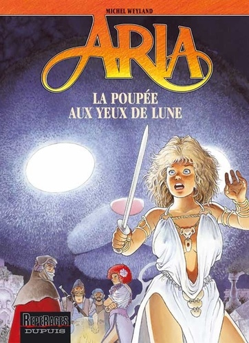 Accompagnée du nain Crafouille. Aria fait route vers son château en Arnolite. La fidèle Rexanne, qui s'y morfond seule depuis son départ, guette désespérément son retour. Non loin de là, des saltimbanques donnent de macabres représentations : armés d'une marionnette au regard hypnotique, ils s'introduisent dans les maisons, exécutent les habitants, font main basse sur les objets de valeur et reprennent leur route vers de prochaines victimes. Tandis qu'Aria aperçoit enfin les tours de son château, Rexanne ouvre la porte aux saltimbanques... Avec La poupée aux yeux de lune, vingt-neuvième épisode de la série "Aria", Michel Weyland nous donne à lire une histoire aux multiples rebondissements. Le temps n'a aucune prise sur Aria, qui a plus que jamais l'aventure chevillée au corps !