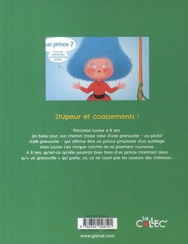 " Des princes, il y en a plein les couloirs des palais, alors qu'une grenouille qui parle, on n'en croise pas tous les jours sous son soulier de vair... " Louise a 8 ans et c'est une princesse. Sa vie s'écoule paisiblement : elle étudie, joue, se chamaille avec ses copines princesses. Tout ce qu'il y a de plus banal, jusqu'au jour où son chemin croise celui d'une grenouille sûre de son charme, qui lui demande de l'embrasser, afin de se transformer en prince charmant. Mais Louise a 8 ans, qu'est-ce qu'elle pourrait bien faire d'un prince charmant ? Alors qu'une grenouille qui parle, ça, c'est pas courant !