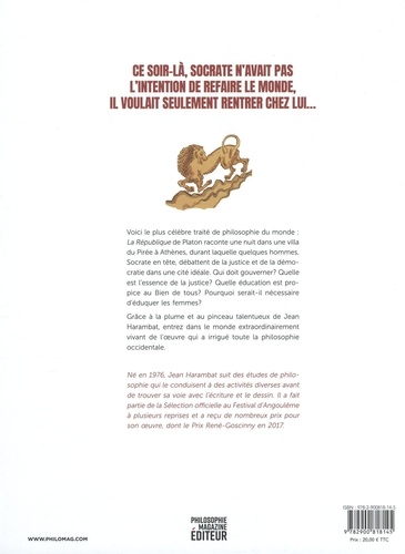 L'un des plus célèbres dialogues philosophiques éclairé par le dessin et le texte de Jean Harambat. Qu'est-ce que la justice ? Pour répondre à la question centrale de La République, Platon propose de bâtir une cité idéale et un modèle de vie communautaire où la philosophie régnerait en souveraine. C'est cette cité que Jean Harambat a choisi de faire vivre dans cet album, sous son pinceau talentueux. "La République, c'est une aventure de l'esprit. C'est la nuit qui offre un voyage". Jean Harambat