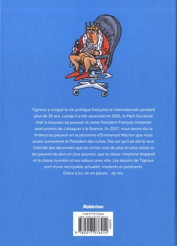 Tignous a croqué la vie politique française et internationale pendant plus de 30 ans. Lorsqu'il a été assassiné en 2015, le Parti Socialiste était à nouveau au pouvoir et notre Président François Hollande avait promis de s'attaquer à la finance. En 2017, nous avons élu la finance au pouvoir en la personne d'Emmanuel Macron que nous avons surnommé le Président des riches. Pas sûr qu'il ait été le seul. Cela fait des décennies que les riches sont de plus en plus riches et les pauvres de plus en plus pauvres, que la classe moyenne disparaît et la classe ouvrière et ses valeurs avec elle. Les dessins de Tignous sont d'une incroyable actualité, insolents et pertinents. Grâce à lui, on en pleure... de rire.