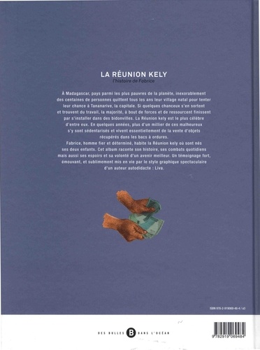A Madagascar, pays parmi les plus pauvres de la planète, inexorablement des centaines de personnes quittent tous les ans leur village natal pour tenter leur chance à Tananarive, la capitale. Si quelques chanceux s'en sortent et trouvent du travail, la majorité, à bout de forces et de ressourcent finissent par s'installer dans des bidonvilles. La Réunion kely est le plus célèbre d'entre eux. En quelques années, plus d'un millier de ces malheureux s'y sont sédentarisés et vivent essentiellement de la vente d'objets récupérés dans les bacs à ordures. Fabrice, homme fier et déterminé, habite la Réunion kely où sont nés ses deux enfants. Cet album raconte son histoire, ses combats quotidiens mais aussi ses espoirs et sa volonté d'un avenir meilleur. Un témoignage fort, émouvant, et sublimement mis en vie par le style graphique spectaculaire d'un auteur autodidacte : Liva.
