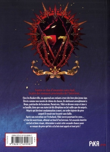 Contre ce clan d'assassins sans égal, la pire des menaces proviendra de l'intérieur... Chez les Baskerville, on apprend aux enfants à tuer dès leur plus jeune âqe. Elevés comme une meute de chiens de chasse, ils obéissent aveuglément à Hugo, patriarche de la maison. Parmi eux, Vikir se dévoue corps et âme à sa famille, bien que son statut de fils illégitime ne lui vaille que du mépris. Mépris qui devient condamnation à mort, sur ordre injuste du père auquel il vouait une loyauté sans faille. Après son exécution sur l'échafaud, Vikir ouvre pourtant les yeux... à l'état de nourrisson, allongé au fond d'un berceau. Cet assassin émérite est bel et bien vivant, déterminé à saisir cette seconde chance pour se venger du père qui lui a à la fois tout appris et tout pris !