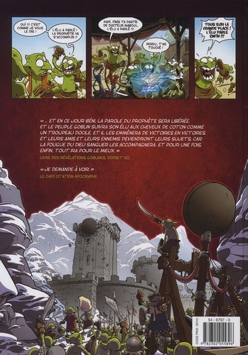 La série Goblin's fête ses dix ans. Et depuis dix albums, notre petit village de guerriers verts aussi malchanceux qu'inefficaces attend que l'élu daigne enfin ouvrir la bouche pour leur délivrer la parole divine. Une chose est sûre : ça valait le coup d'attendre. "... Et en ce jour béni, la parole du prophète sera libérée. Et le peuple goblin suivra son élu aux cheveux de coton comme un troupeau docile. Et il les emmènera de victoires en victoires. Et leurs amis et leurs ennemis deviendront leurs sujets, car la fougue du dieu sanglier les accompagnera. Et pour une fois, enfin, tout ira pour le mieux". Livre des révélations goblines, verset XII. "Je demande à voir" . Le chef, citation apocryphe