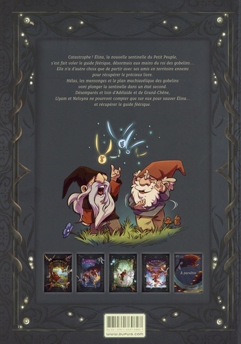 Catastrophe ! Car Elina, qui vient à peine de succéder à sa grand-mère Adélaïde en tant que sentinelle du Petit Peuple, a déjà perdu le guide féerique, qui se trouve maintenant aux mains du roi des Gobelins... Elle va donc devoir se rendre en terre ennemie, accompagnée de ses amis la fée Nelvyna et le lutin Llyam, malgré les conseils incompréhensibles de Grand-Chêne. Ce qui risque fort de la précipiter dans le piège que lui a préparé le roi des Gobelins, aidé par un étrange personnage qu'il a privé de sa liberté... Carbone, Barrau et Forns instillent un peu de tragédie à leur aventure feelgood. Confrontée à ses manquements et au mal qu'elle pourrait faire à ses intimes, Elina révèle une part inconnue de sa psychologie.