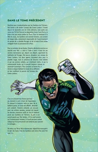Alors qu'il tente de remettre de l'ordre dans sa relation avec Carol, Hal Jordan se voit, une fois de plus, contraint de foire équipe avec Sinestro. Enquêtant sur un crime, les deux Green Lantern suivent une piste qui les amène à découvrir les secrets de l'un des Corps les plus mystérieux du spectre : la Tribu Indigo. En parallèle, les Gardiens de l'Univers oeuvrent en secret à la disparition du Corps des Green lantern green lantern offre au scénariste Geoff Johns l'occasion de poursuivre l'exploration de la saga cosmique qu'il a contribué à bàtir depuis plusieurs années, assisté au dessin par le talentueux Doug Manhke. Ce volume inaugure le grand final de cette épopée et développe des pistes amorcées par blackest night.