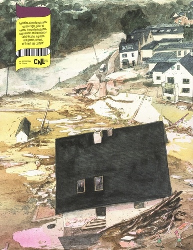 Le Sud est irrespirable, le Nord est bétonné, l'Est prend l'eau, l'Ouest brûle(et vice-versa). Saint Nicolas traîne ses bottes sur les routes embouteillées, dans les forêts polluées et dans les zones sinistrées. Il regarde droit devant lui. Il arpente l'anthropocène déglingué, il trottine de la ville à la campagne, d'utopies concrètes en camps de fortune. Partout où il passe les enfants trinquent... qui se soucie d'eux ? Saint Nicolas reste calme. Mais méfiez vous, ça chauffe sous sa mitre ! La colère nous gagnera à notre tour. Le saint explosera pour de bon. Les palais brûleront, là où fomentent les puissants de ce monde. Que fomentent-ils, ces prédateurs ? Mais... Horreur ! Des festins par exemple, où des enfants sont au menu !
