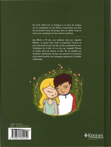 Ce récit inédit est un prologue à la série de romans La vie compliquée de Léa Olivier et permettra aux fans de la première heure de plonger dans la réalité rurale et tout aussi compliquée de leur héroïne préférée. Léa Olivier a 14 ans, une meilleure amie qui s'appelle Marilou, un grand frère dont la popularité l'énerve au plus haut point et avec qui elle se bat constamment pour l'utilisation de la télé, et un chum qui s'appelle Thomas et qu'elle aime par-dessus la tête. Sa vie paisible est toutefois chamboulée lorsque ses parents lui annoncent qu'ils doivent quitter leur campagne natale pour s'installer à Montréal.