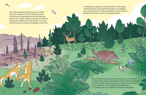 A la recherche d'un gland enterré, un écureuil nous guide peu à peu dans la forêt. D'abord près de chez nous pour découvrir les grandes espèces d'arbres, leurs interactions avec les insectes, comment ils s'associent avec les champignons pour pousser ou puisent leur force dans la terre... Puis le récit glisse en douceur vers leur rôle primordial sur notre planète et la nécessité de leur préservation. Indispensable !
