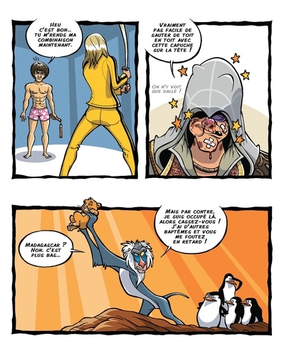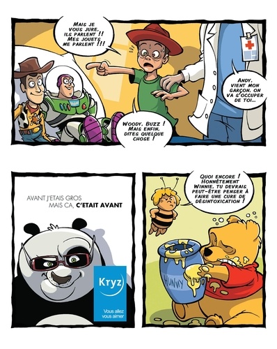 Qu'ils soient issus du cinéma, de la bande dessinée ou de la publicité, les personnages de fiction ont envahi notre quotidien. Dans leur univers, ils vivent des aventures extraordinaires, hilarantes ou représentent avec fierté une marque ou un produit. Nos personnages sont donc de retour, et souhaitent bien nous faire savoir que malgré leurs vies "publiques" fabuleuses, il n'en va, mais alors vraiment pas, de même de leurs quotidiens. Découvrez une succession de vignettes humoristiques qui parodient gentiment ces personnages célèbres. Attention, cet album peut contenir des traces d'humour et de pastiche. Les auteurs ne sont pas responsables des risques d'accoutumance au rire.