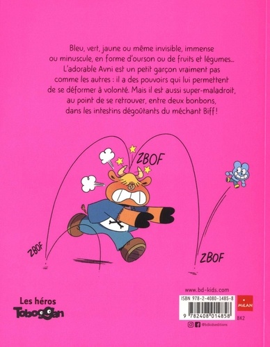 Avni est un jeune écolier... pas tout à fait comme les autres ! Alors que ses camarades sont des animaux tout ce qu'il y a de plus normal, lui est bleu, a de grandes oreilles rondes... et surtout le pouvoir de se déformer à volonté ! Ces incroyables capacités sont bien pratiques pour aider les copains, être le plus fort en sport et le meilleur en bêtises. Mais les pouvoirs du gentil Avni l'entraînent souvent dans des situations plus loufoques les unes que les autres ! Qui d'autre que lui pourrait ainsi atterrir malencontreusement dans l'estomac de Biff, la brute de l'école, alors qu'il était juste devenu tout petit pour se cacher dans un paquet de bonbons ? Un nouvel album de l'"animal vraiment non identifié" préféré des jeunes lecteurs, qui découvrent avec lui les joies de la différence !