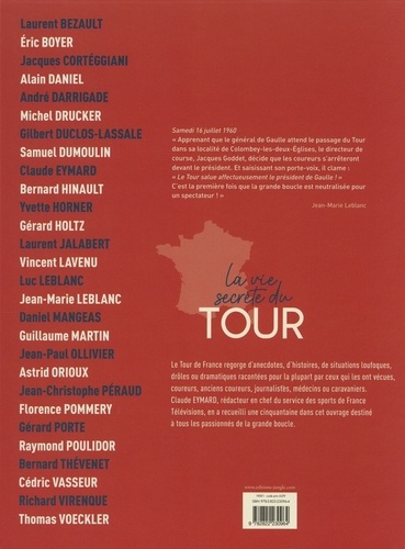 Le Tour de France regorge d'anecdotes, d'histoires, de situations loufoques, draies au dramatiques racontées pour la plupart par ceux qui les ont vécues, coureurs, anciens coureurs, journalistes, médecins ou caravaniers. Claude Eymard, rédacteur en chef du service des sports de France Télévisions, en a recueilli une cinquantaine dans cet ouvrage destiné à tous les passionnés de la grande boucle.