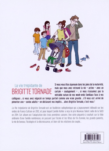 Si vous vous êtes épanouie dans les joies de la maternité, mais que vous avez retrouvé la vie « active » avec un certain « soulagement » ; si vous ressentez le besoin de prendre des calmants avant de partir au ski avec quatre enfants ; si vous n'assumez pas la véritable nature de vos week-ends familiaux face à vos collègues ; si vous avez déjà manqué de dignité face à un orthophoniste gentil ; si vous avez négocié un temps partiel comme une vraie gourde ; s'il vous est arrivé de pimenter une « soirée adulte » en déclarant vos impôts... alors bienvenue dans La Vie trépidante de Brigitte Tornade ! Brigitte a 35 ans, quatre enfants, un mari et un lapin. Brigitte est une femme moderne : une travailleuse éreintée et une mère de famille au bout du rouleau.Une série piquante à souhait sur la folie ordinaire d'une famille nombreuse, en passant par l'école et les fêtes de fin d'année, les grands-parents, la vie de bureau, l'écologie et la décroissance, et bien sûr les relations de couple...