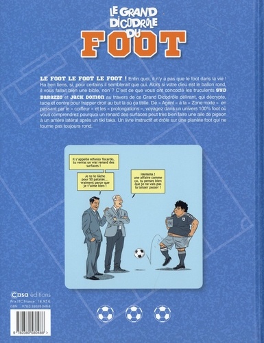 LE FOOT LE FOOT LE FOOT ! En? n quoi, il n'y a pas que le foot dans la vie ! Ha ben tiens, si, pour certains il semblerait que oui. Alors si votre dieu est le ballon rond, il vous fallait bien une bible, non ? C'est ce que vous ont concocté les truculents Syd Barazzo et Jack Domon au travers de ce Grand Dicodrôle délirant, qui décrypte, tacle et contre pour frapper droit au but là où ça titille. De " Agent " à la " Zone mixte " en passant par le " coiffeur " et les " prolongations ", voyagez dans un univers 100% foot où vous comprendrez pourquoi un renard des surfaces peut très bien faire une aile de pigeon à un arrière latéral après un tiki taka. Un livre instructif et drôle sur une planète foot qui ne tourne pas toujours rond.