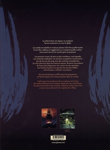 Le phénomène est apparu en quelques heures seulement sur tout le globe. La cendre est volatile et s'insinue partout. Une fois qu'elle touche le sol, elle y adhère et s'agglomère sur n'importe quelle surface, recouvrant tout d'une couche grise et poisseuse. Les premiers morts, de plus en plus nombreux, sont signalés aux autorités médicales. Les premiers symptômes commencent par des larmes de sang, puis des crachats ensanglantés, la mort intervient dans les trente-six heures. D'autres succombent de façon plus fulgurante, leur centre nerveux paralysé. Les cendres fauchent en premier lieu les plus faibles : asthmatiques, vieillards, nourrissons... Un vent de panique souffle parmi les populations et l'état d'urgence est instauré partout dans le monde. L'oeil rouge et incandescent de ces typhons et la pluie de cendres demeurent une énigme totale pour les scientifiques. Les gouvernements et les autorités militaires mettent alors tout en oeuvre pour découvrir les origines de ce fléau.