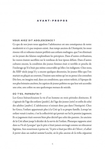 Mal-être, conduites à risque, contrôle de son apparence, addictions, difficultés affectives ou sociales, troubles alimentaires... L'adolescence se révèle pour certains une épreuve difficile. Vécue avec exubérance ou discrétion, elle reste un passage obligé, même si elle est ressentie de façon différente par chaque nouvelle génération. Cette bande dessinée revient sur ce qui caractérise l'adolescence dans notre société en perpétuel changement.