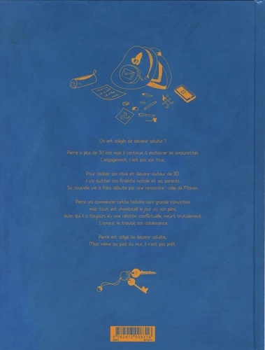 Pierre, héros immature, n'a pas envie de devenir adulte. L'engagement, c'est pas son truc. Des histoires d'amour, il n'en aime que les débuts. Et puis il va rencontrer Manon... Une autofiction intimiste et sociétale. Nous suivons Pierre, auteur de bandes dessinées à deux moments fondamentaux de sa vie : ado, incapable d'embrasser une fille, et trentenaire, incapable de s'investir dans son couple avec Manon. Il se dit pourtant qu'elle pourrait être la femme de sa vie... ça tombe bien, c'est le sujet de l'histoire qu'il a vendue à son éditeur. Alors, il va surjouer le parfait amour et plonger dans une difficile mise en " abîme " .