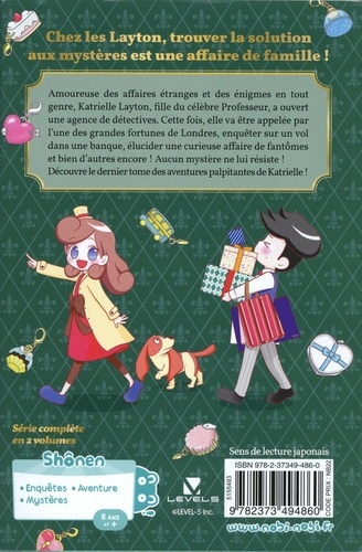 Chez les Layton, trouver la solution aux mystères est une affaire de famille ! Amoureuse des affaires étranges et des énigmes en tout genre, Katrielle Layton, fille du célèbre Professeur, a ouvert une agence de détectives. Cette fois, elle va être appelée par l'une des grandes fortunes de Londres, enquêter sur un vol dans une banque, élucider une curieuse affaire de fantômes et bien d'autres encore ! Aucun mystère ne lui résiste ! Découvre le dernier tome des aventures palpitantes de Katrielle !