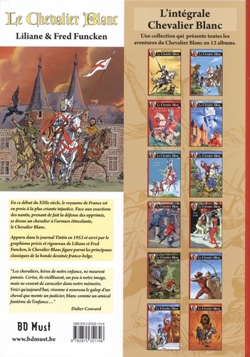 En ce début du Mlle siècle, le royaume de France est en proie d la plus criante injustice. Face aux exactions des nantis, prenant de fait la défense des opprimés, se dresse un chevalier d l'armure étincelante, le Chevalier Blanc. Apparu dans le journal Tintin en 1953 et servi parle graphisme précis et rigoureux de ',diane et Fred Funcken, le Chevalier Blanc figure parmi les principaux classiques de la bande dessinée franco-belge. "Les chevaliers, héros de notre enfance, ne meurent jamais. Certes, ils vieillissent, un peu d notre image, mais ne cessent de caracoler dans notre mémoire. Voici qu'aujourd'hui, résonne à nouveau le galop d'un cheval que monte un justicier, blanc comme un amical fantôme de l'enfance..." Didier Convard