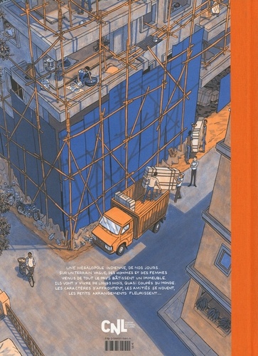 Inde, de nos jours, dans le quartier résidentiel d'une grande ville... Sur le chantier d'un immeuble en construction coexistentunedizainede personnages venus des quatre coins du pays : Ali, le jeune ingénieur inexpérimenté, Trinna, un contremaître intransigeant, Rafik, Mehboob et Salma, manoeuvresprovinciauxrêvantdelendemains meilleurs... mais aussiGanesh et sa bande de Rajasthani, carreleurs hindous aux accents conservateursqui viennentgrossir les rangs de ce chantier supervisé par un jeune et riche promoteur. Ce petit théâtreoffre une vue microscopique de l'Inde contemporaine, où se côtoient langues, religions, chefs et larbins dans une précarité toujours portée par un vent tragi-comique. Et, à mesure que l'immeuble s'élève laborieusement, les rêves et ambitions de chacunse heurtent et s'entremêlentdans ce paysage humain et urbain à couper le souffle.