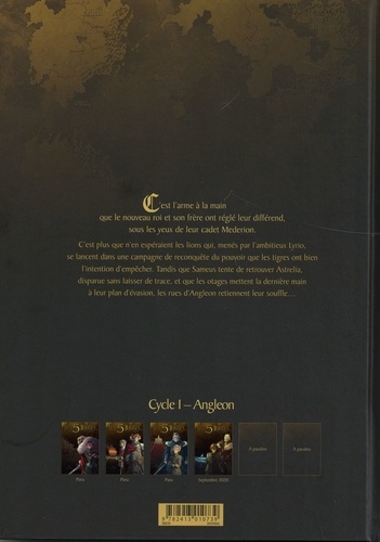 C'est l'arme à la main que le nouveau roi et son frère ont réglé leur différend, sous les yeux de leur cadet Mederion. C'est plus que n'en espéraient les lions qui, menés par l'ambitieux Lyrio, se lancent dans une campagne de reconquête du pouvoir que les tigres ont bien l'intention d'empêcher. Tandis que Sameus tente de retrouver Astrelia, disparue sans laisser de trace, et que les otages mettent la dernière main à leur plan d'évasion, les rues d'Angleon retiennent leur souffle...