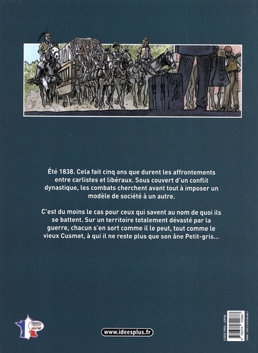 Eté 1838. Cela fait cinq ans que durent les affrontements entre carlistes et libéraux. Sous couvert d'un conflit dynastique, les combats cherchent avant tout à imposer un modèle de société sur un autre. C'est du moins le cas pour ceux qui savent au nom de quoi ils se battent. Sur un territoire totalement dévasté par la guerre, chacun s'en sort comme il le peut. Le vieux Cusmet, à qui il ne reste plus que son âne, aussi...