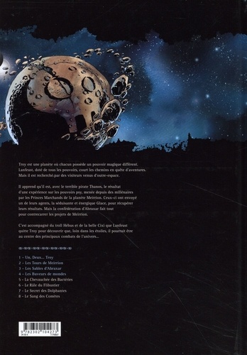 Troy est une planée oit chacun possède un pouvoir magique différent. Lanfeust, doté de tous les pouvoirs, court les chemins en quête d'aventures. Mais il est recherche par des visiteurs venus d'outre-espace. Il apprend qu'il est, avec le terrible pirate Thanos, le résultat d'une expérience sur les pouvoirs psy, menée depuis des millénaires par les Prince Marchands de la planète Meirrion. Ceux-ci ont envoyé un de leurs agents, la séduisante et énergique Glace, pour récupérer leurs résultats. Mais la confédération d'Abrazar fait tout pour contrecarrer les projets de Meirrion. C'est accompagné du troll Hébus et de la belle Cixi que Lanfeust quitte Troy pour découvrir que, loin dans les étoiles, il pourrait être au centre des principaux combats de l'univers...