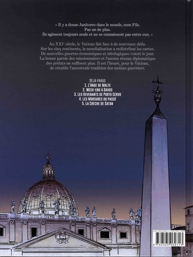 A Malte où il a rendez-vous avec les commanditaires de sa dernière mission, Vince doit assurer la sécurité des archéologues et acheteurs d'art oeuvrant pour le Vatican. Son audace et son efficacité lui ayant valu plusieurs pleins succès, il se voit maintenant offrir une promotion. Désormais, il fera partie du Corps des Janitors, une cellule spéciale nouvellement créée par les services secrets de l'Etat pontifical pour empêcher ses membres de succomber aux mauvaises tentations. Le Vatican a en effet décidé de se doter d'un outil de protection et de renseignement qui soit libre d'agir rapidement et en toute indépendance par rapport aux différentes tendances qui cohabitent au sein de l'Eglise, un outil qui soit en outre inconnu des organes traditionnels de renseignement et de sécurité de la Curie... Le nouveau Janitor est ainsi envoyé à Davos où se déroule chaque année un Forum réunissant les dirigeants les plus importants des mondes politique et économique pour débattre des grandes questions qui concernent la planète. Cette année, deux cardinaux en charge des finances du Vatican y participeront. Sous le nom de code de Trias, Vince y surveillera très discrètement les agissements de ces deux prélats. Mais il ne sera pas le seul à s'intéresser à eux...