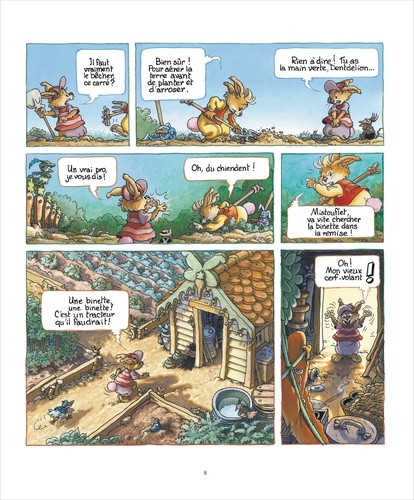 Aujourd'hui, c'est l'anniversaire de Dentdelion. Toute la famille Passiflore s'active pour lui préparer une belle fête surprise. Tante Zinia fait chauffer les fourneaux, papa Onésime bricole un cadeau mystérieux et Romarin, Pirouette et Agaric préparent la décoration du banquet. Mais une invitée sans-gêne pourrait bien gâcher la fête... La famille Passiflore est enfin de retour avec de nouvelles aventures sous forme de bande dessinée. C'est un vrai régal de retrouver ou de découvrir cette joyeuse famille de lapins et leur univers plein de fantaisie.
