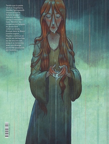 Printemps 1666, la peste sévit à Londres. A quelques centaines de lieues dans un village de la campagne anglaise, un jeune lord désargenté, Hayden Springworth, est fasciné par un phénomène météorologique jusqu'alors inexpliqué : les arcs-en-ciel. Hayden part à l'aventure dès qu'il en aperçoit un car Poppy, sa vieille nourrice irlandaise, lui a assuré que de monstrueux lutins, les Leprechaun, cachent des chaudrons remplis d'or au pied de ces arcs colorés. Cette vision empreinte de légende et de magie va se confronter à la réalité quand Hayden fait la connaissance d'Isaac Newton, qui lui expose ses travaux en cours sur la lumière. Bientôt, la rigueur scientifique balaye toutes les peurs de l'adolescent et alimente sa soif de connaissance. Envoyé dans le Béarn pour devenir maître-frappeur de monnaie, comme son père avant lui, Hayden est bien décidé à continuer ses recherches pour découvrir le secret des arcs-en-ciel avant Newton. Mais sa rencontre avec une étrange jeune fille qui semble avoir le pouvoir de faire tomber la pluie partout où elle se rend va bousculer ses certitudes. Une rencontre fantastique et colorée entre la science et la magie !