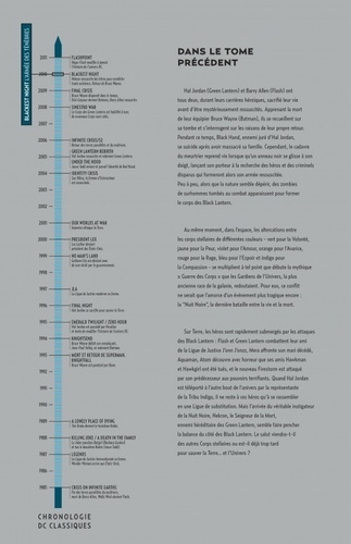 Nekron, le Seigneur des Morts, arrive sur Terre et prend la tête d'une armée de héros ressuscités. Green Lantern, Flash, Atom et Mera vont devoir rejoindre les Corps intergalactiques pour disposer de pouvoirs capables de repousser la menace des morts-vivants. La dernière bataille pour la survie de la Terre débute ici ! Blackest Night ou l'événement supervisé par Geoff Johns (Justice League) et réalisé par le tandem Ivan REIS (Aquaman) et Doug Mahnke (Green Lantern). Une épopée magistrale qui oppose les héros de l'univers DC non seulement à des zombies surpuissants, mais également à leurs erreurs et leurs tragédies passées. Cette édition inédite et intégrale propose en suppléments des commentaires et des pages dévoilant les coulisses de cette saga majeure.