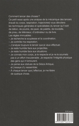 "L'Homme a été créé par lui-même pour lancer des choses" , voilà donc un petit essai pour apprendre à bien les lancer. Ce livre présente dexcellents conseils et diverses techniques pour maîtriser certains gestes et les appliquer à bon escient. Cet ouvrage essentiel consacré au lancé a circulé sous le manteau dans sa première édition. Il sagit là dune édition pour les librairies, revue et proposé à prix modique. Coédition Les Bricoles et les Editions des idées lumineuses sous le parapluie des éditions Goater.