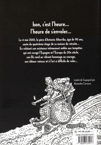 Le 4 mai 2001, le père d'Antonio Altarriba, âgé de 90 ans, saute du quatrième étage de sa maison de retraite... En relatant son existence intimement mêlée aux tempêtes qui ont ravagé l'Espagne et l'Europe du 20e siècle, son fils rend un vibrant hommage au courage, aux idéaux vaincus et à l'art si difficile de voler...