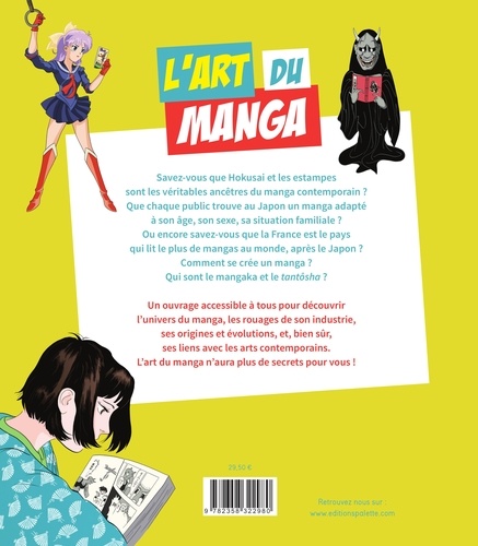 Savez-vous que Hokusai et les estampes sont les véritables ancêtres du manga contemporain ? Que chaque public trouve au Japon un manga adapté à son âge, son sexe, sa situation familiale ? Ou encore savez-vous que la France est le pays qui lit le plus de mangas au monde, après le Japon ? Comment se crée un manga ? Qui sont le mangaka et le tantôsha ? Un ouvrage accessible à tous pour découvrir l'univers du manga, les rouages de son industrie, ses origines et évolutions, et, bien sûr, ses liens avec les arts contemporains. L'art du manga n'aura plus de secrets pour vous !