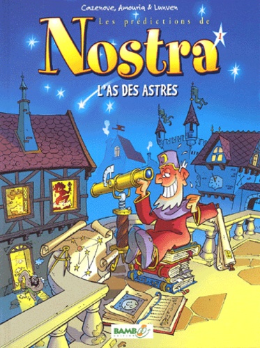 Aussi jubilatoires que divinatoires, les prédictions de Nostra vont vous faire voir l'avenir sous un jour radieux : un peu charlatan, un peu tire-au-flanc, un œil dans sa lunette et l'autre toujours prêt à mater les damoiselles, ce Nostra là nous plonge dans des aventures qui mènent quelques fois aux astres... et souvent au désastre !