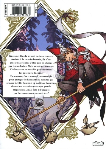 Kustas et Dagda se sont enfin retrouvés. Arrivés à la tour-infirmerie, ils n'ont plus qu'a attendre d'être pris en charge par les médecins. Mais au même moment, Kieffrey sent un terrible pressentiment lui parcourir l'échine. De son côté, Coco a trouvé une stratégie pour protéger les habitants du monstre qui attaque la ville. Son plan va mobiliser beaucoup de sorciers et va demander une grande préparation... mais sera-t-il accepté par la communauté des sorciers ?