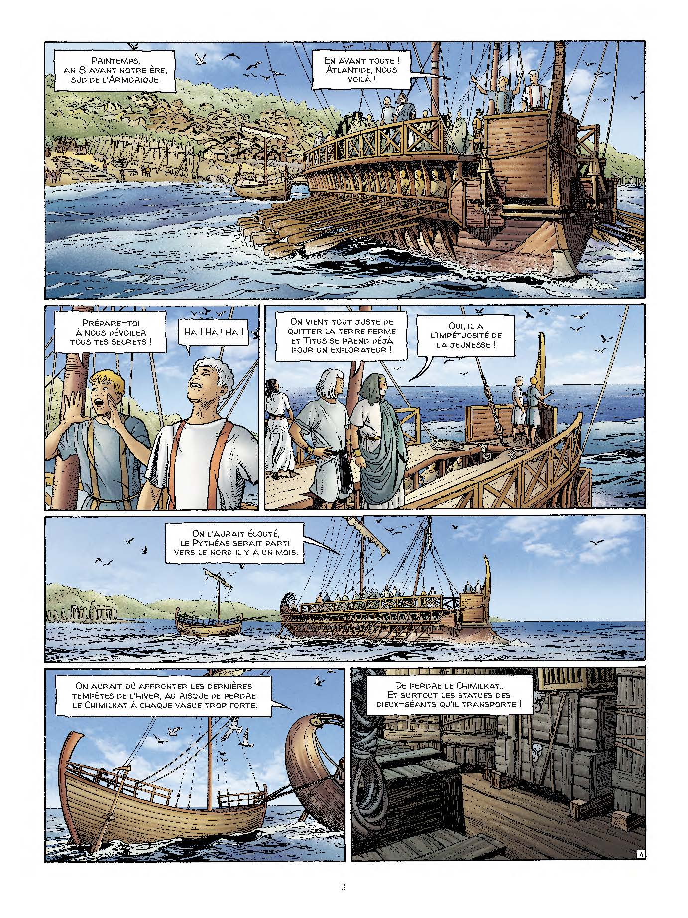 Après avoir finalement achevé la construction de leur navire, Alix et ses compagnons partent en direction de l'Atlantide avec quelque Gaulois. Mais rapidement les tensions éclatent, pour finalement exploser lors d'un conflit entre les Gaulois et une tribu autochtone que l'équipage croisera. Mais la convoitise et la haine atteindra son paroxysme lorsque l'équipage arrivera finalement sur les rives de l'Atlantide : plus que jamais, la présence des dieux semble bien néfaste aux yeux d'Alix et de ses compagnons.