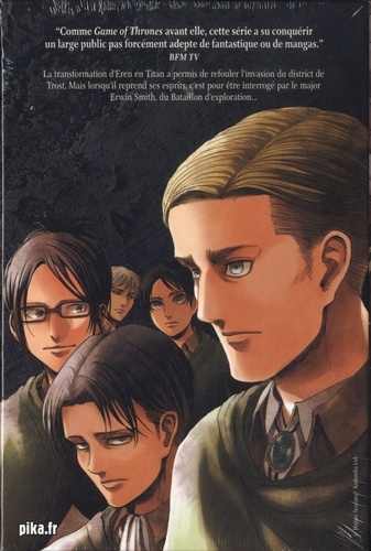 La transformation d'Eren en Titan a permis de refouler l'invasion du district de Trost. Mais lorsqu'il reprend ses esprits, c'est pour être interrogé par le major Erwin Smith, du Bataillon d'exploration...